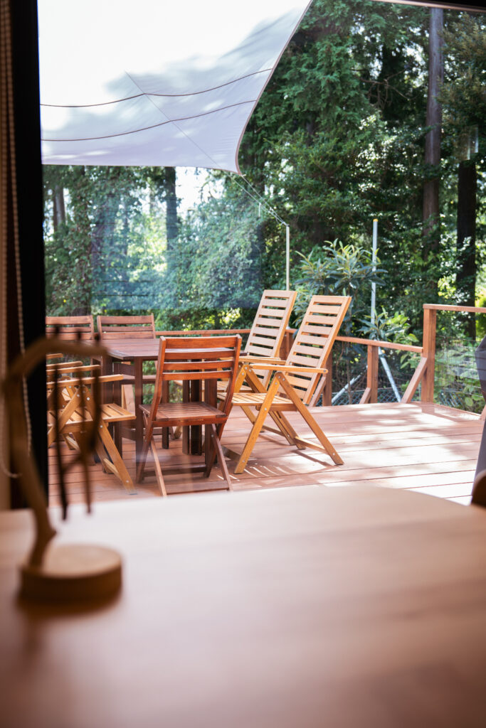 木々の息づかいを感じることができるように、解放的なウッドデッキをつくりました。