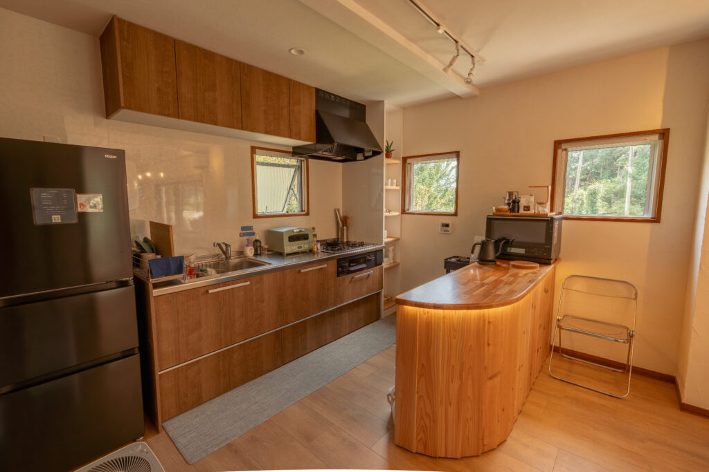 冷蔵庫や調理道具はひと通り揃い、旅先でもいつものように“つくる時間”を楽しめます。