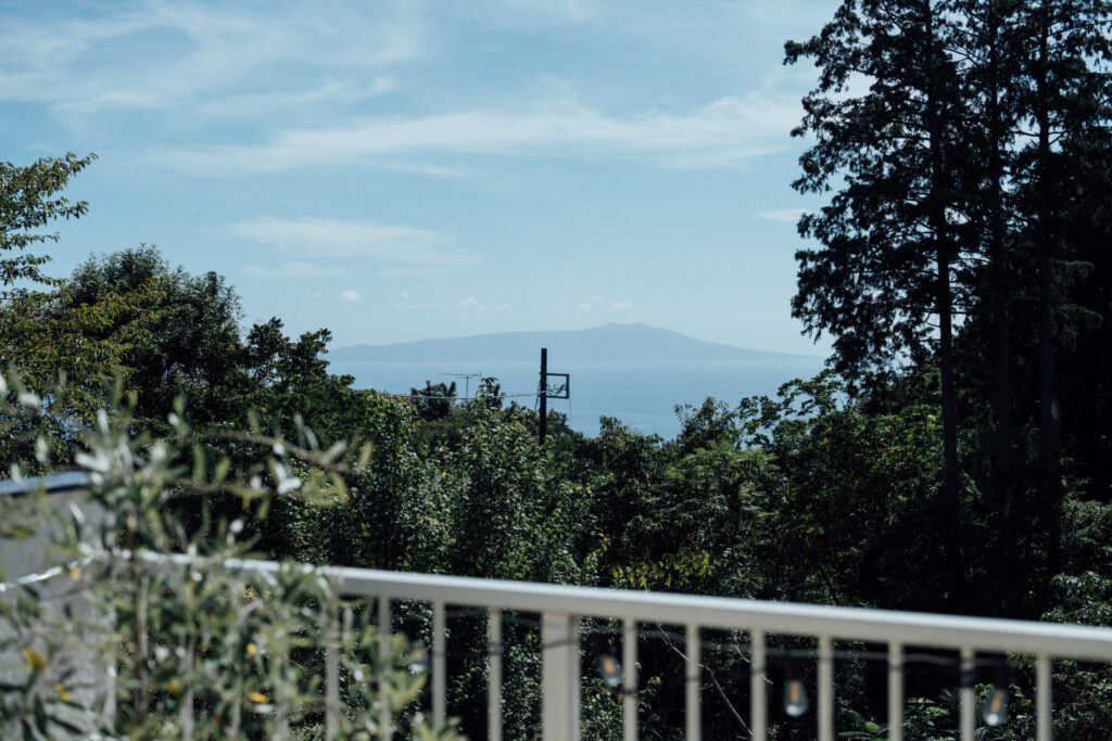 二階からは木々の向こうに相模湾に浮かぶ大島がそっと顔をだします。 晴れた日は朝日が海を輝かせる美しい景色がこころを癒してくれます。満月の日は海に月明かりが浮かびます。静かで贅沢なプライベートビューをどうぞご堪能ください。
